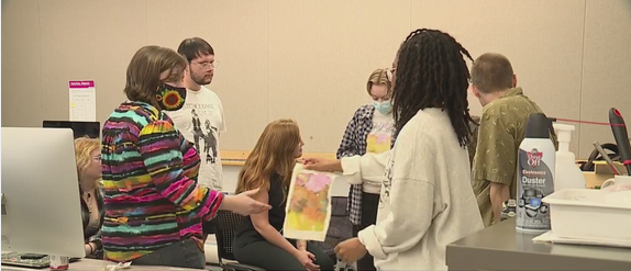 The students will complete their projects in a few weeks. Once they’re completed, they’ll be put up on the side of the Industries Of The Blind building, just as previous students’ projects have been.