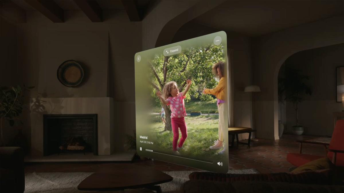 The Apple Vision Pro mixed reality headset display overlaying the real world.