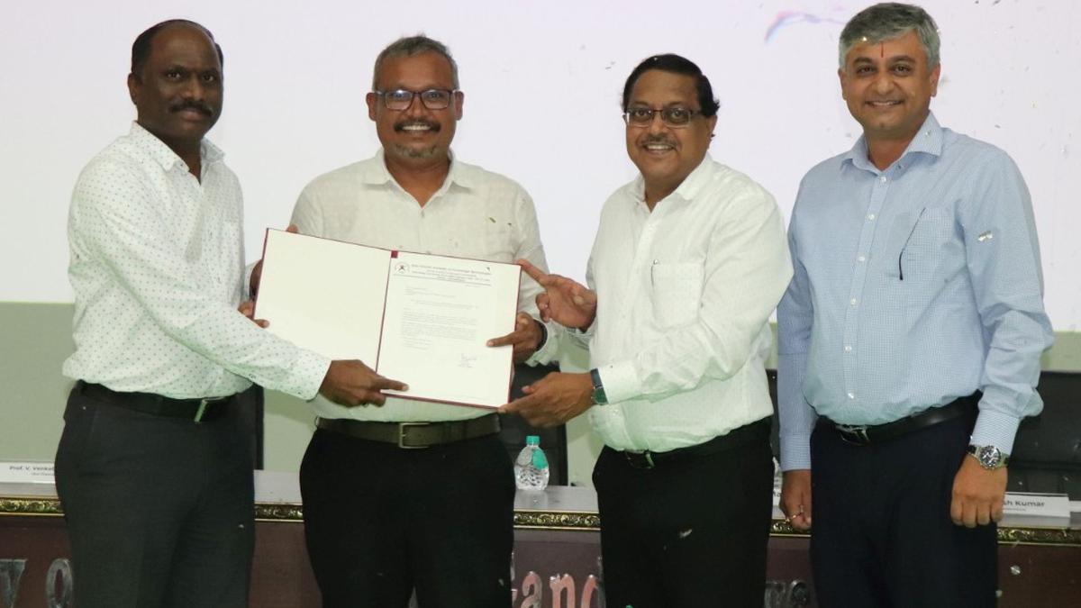 (From left) RGUKT-Basar director P. Sathish Kumar, course designer K. Santhosh Kumar, RGUKT-Basar vice-chancellor V. Venkataramana and Hiten Bhimani of NEWS.
